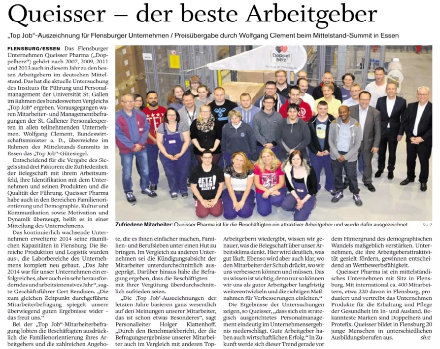 Erneut "Top Job"-Auszeichnung für Flensburger Unternehmen Queisser - der beste Arbeitgeber
